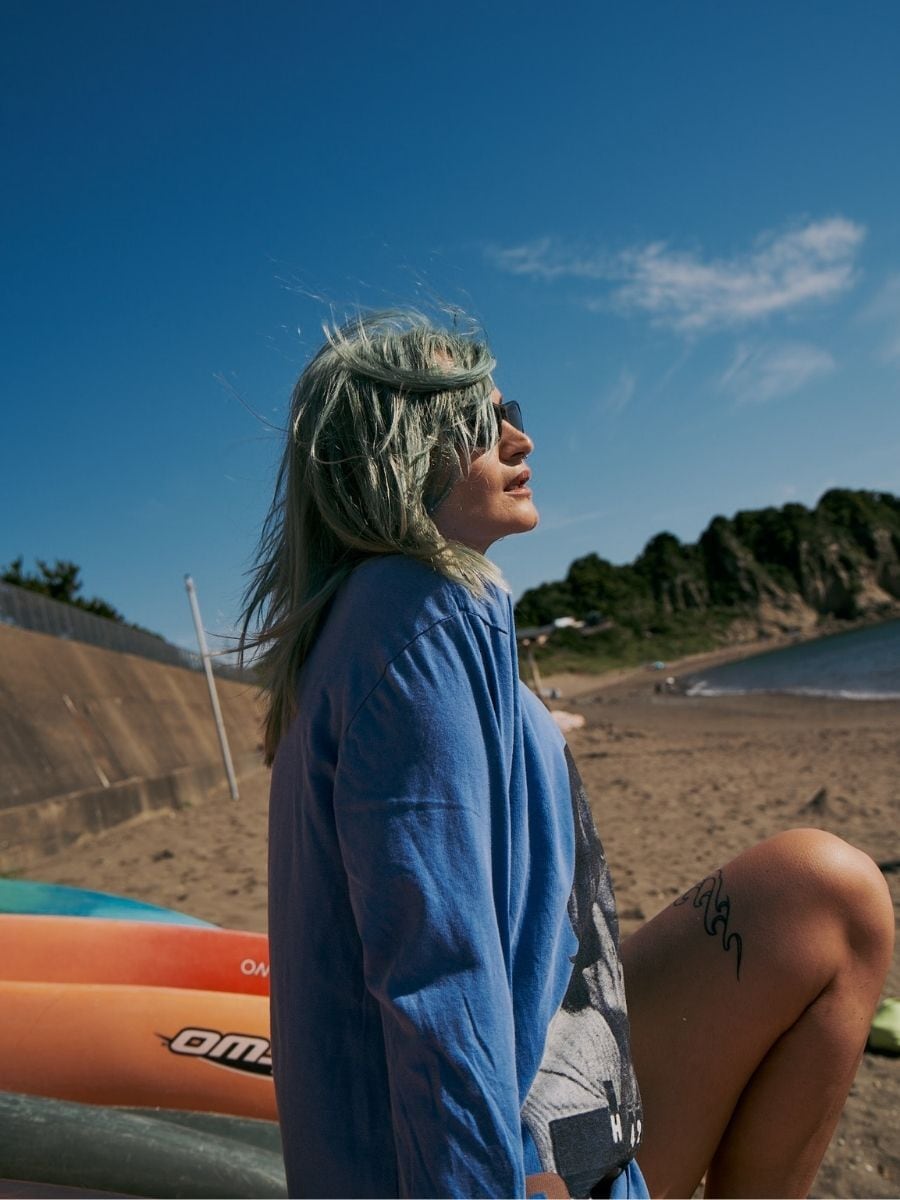 ネック、袖口、裾はダブルステッチ仕様。